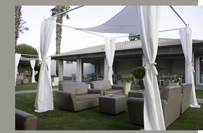 All’esterno, gli ampi giardini, i porticati panoramici e i gazebo immersi nel verde offrono scenografie naturali di grande suggestione, ideali per ricevimenti all’aperto e aperitivi al tramonto.